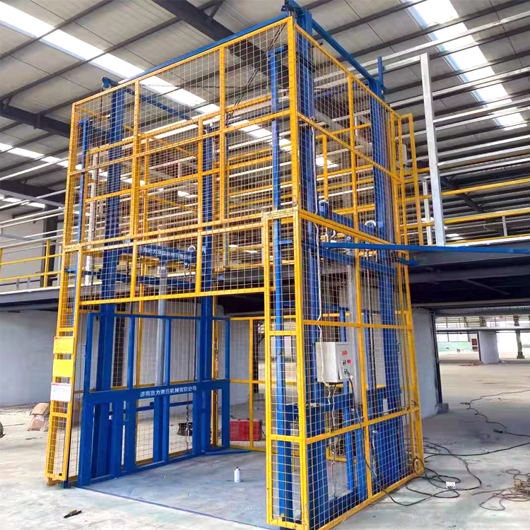 2.一、二楼进出货方向各做一套顶升联动门,与平台联动,平台上升时,顶升门下降,无需人工操作。