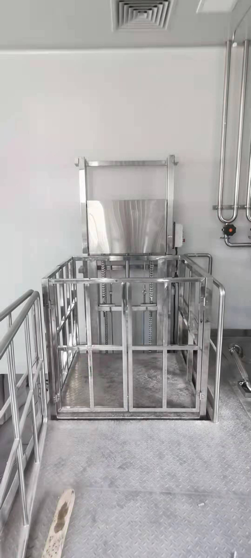 不锈钢导轨货梯安装完成!适用于洁净车间货物运输!