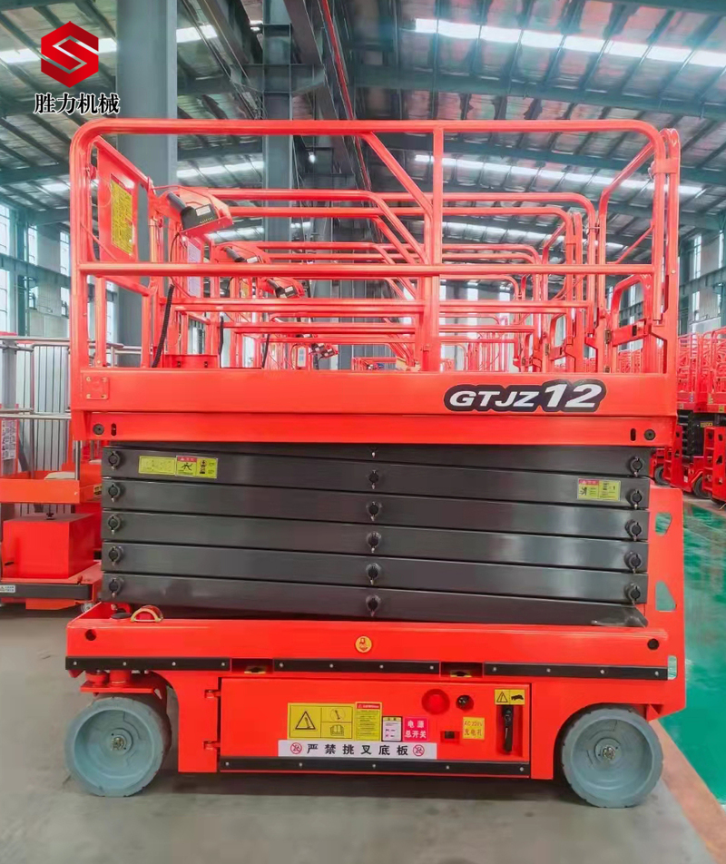 自行式高空作业平台,它具有自动行走的功能,能够在不同工作状态下,快速、慢速行走,只需一个人操作便可在空中连续完成上下、前进、后退、转向等所有动作。特别适合于机场候机楼、车站、码头、商场、体育场馆、小区物业、厂矿车间等较大范围的作业。