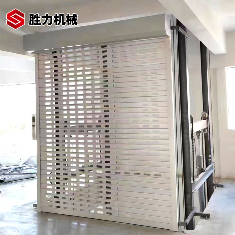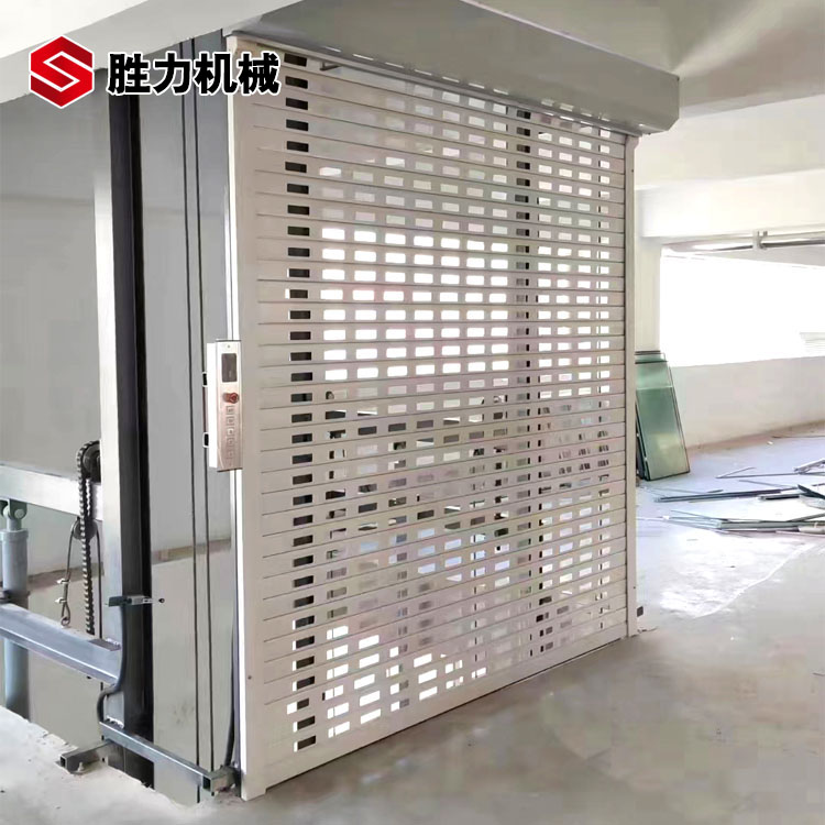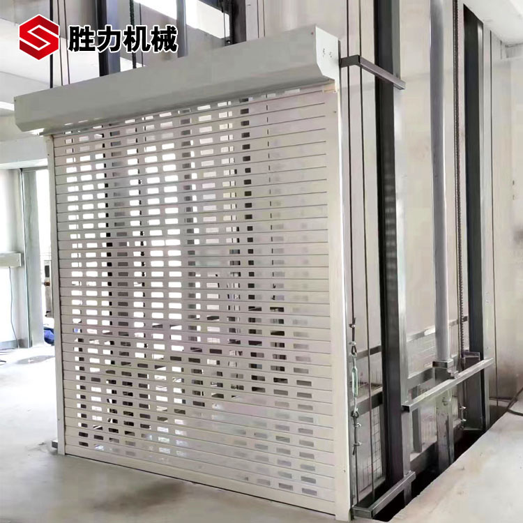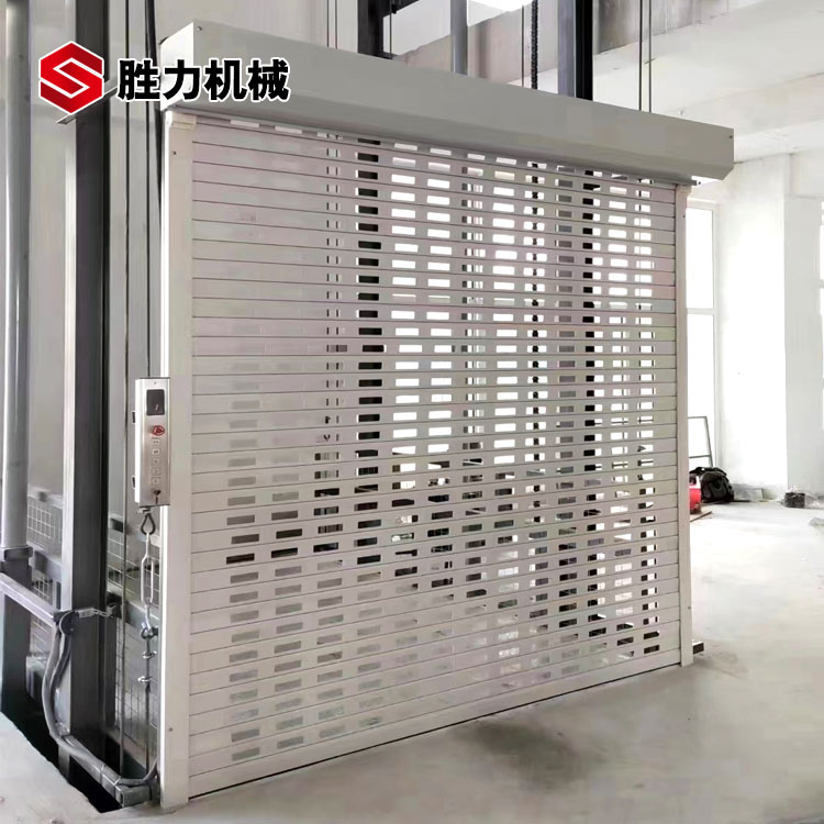 安全层门:每层进出货口配套做联动电动卷帘门。与液压升降货梯联动,无需人工操作。