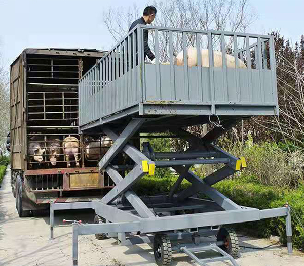 移动式卸猪台是固定卸猪台的改良版,它打破了固定卸猪台的必须固定在某个特点的作业地点,移动式卸猪台可以移动到任何一个地点进行装卸作业,是专为生猪养殖场、屠宰场冷链加工厂等环境设计生的,是用来装卸生猪等肉制品设备,可以减少人工,批量作业。
