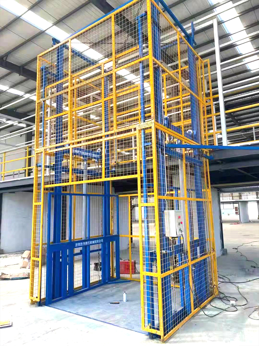 电动液压货物提升机适合于有二层及以上工业厂房、仓库、超市等多楼层间的货物传输。