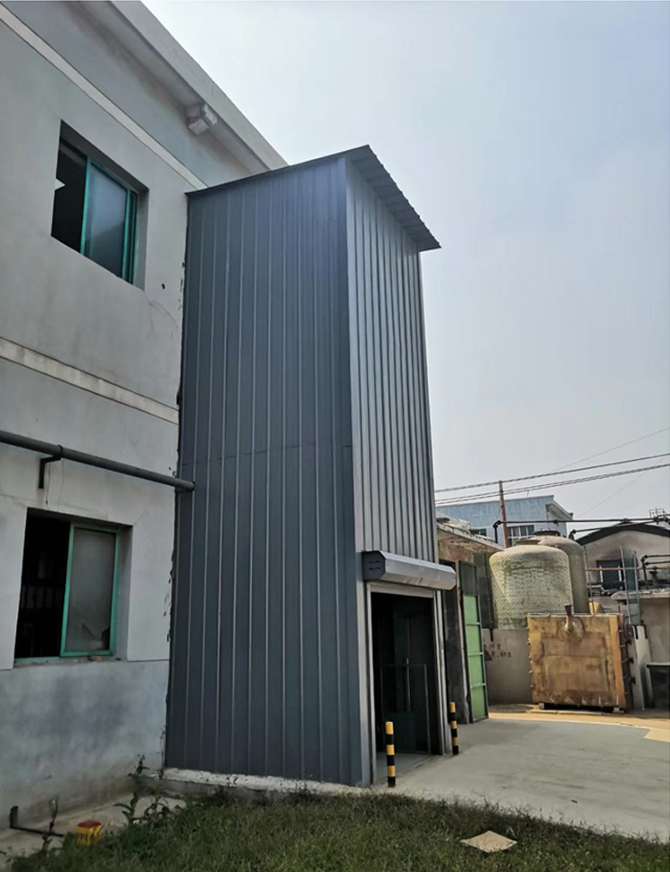 我们在安装液压升降货梯时,一般会配套外围防护以及外层门,根据不同的使用环境,外围防护和外层门的选择也是多样式的。如果我们安装在室内,四周没有墙体的情况下,我们会在液压升降货梯的外围做钢网封闭,这样可以有效的防止人员踏空。如果我们是安装在楼体户外,在安装完液压升降货梯后,我们会在平台外侧做彩钢瓦整体封闭,这样可以有效的避免液压升降楼货长期被雨水侵蚀。